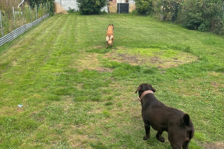 Les chiens disposent d’un jardin de 250 m², entièrement clôturé, où ils peuvent courir, jouer ou simplement se prélasser au soleil en toute tranquillité. La clôture garantit leur sécurité, tout en leur permettant de profiter pleinement de la nature.